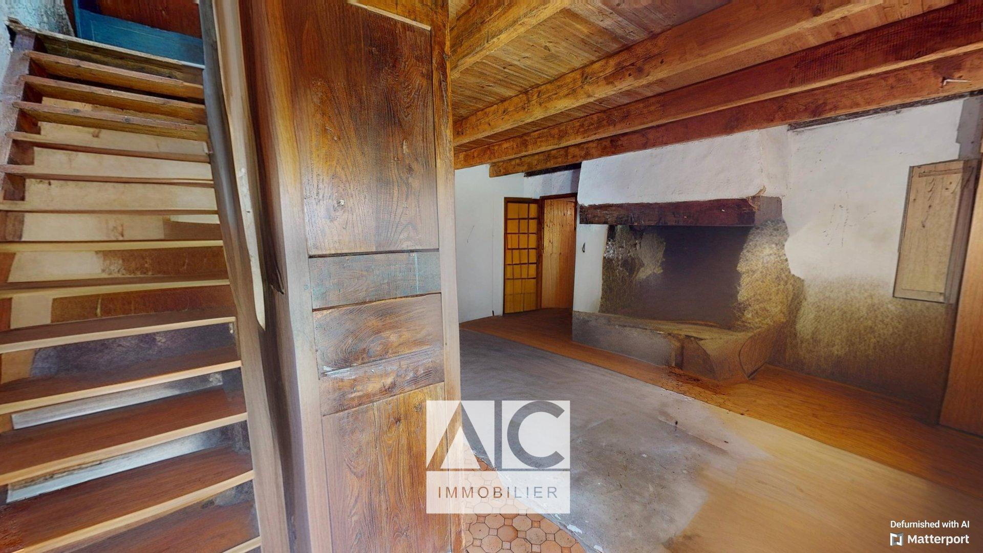 REZ-DE-CHAUSSÉE : (Partie 1) : Entrée / Salon-séjour avec cheminée / Cuisine avec accès extérieur / Salle d'eau / WC // (Partie 2) : Séjour (28m2) avec cheminée.